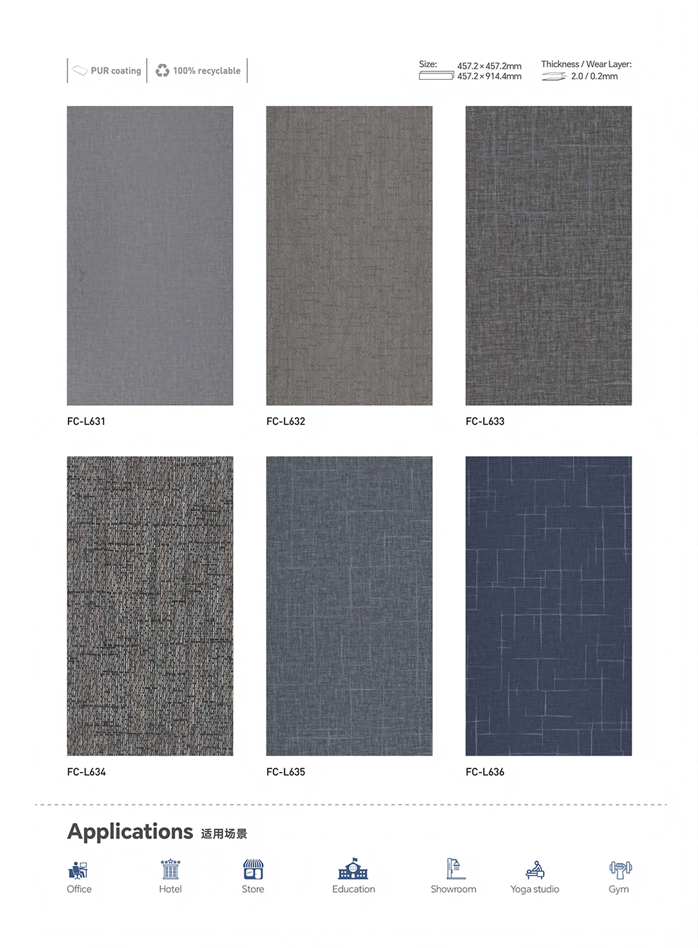 厚度/耐磨层:2.0mm/0.2mm 3.0mm/0.3mm