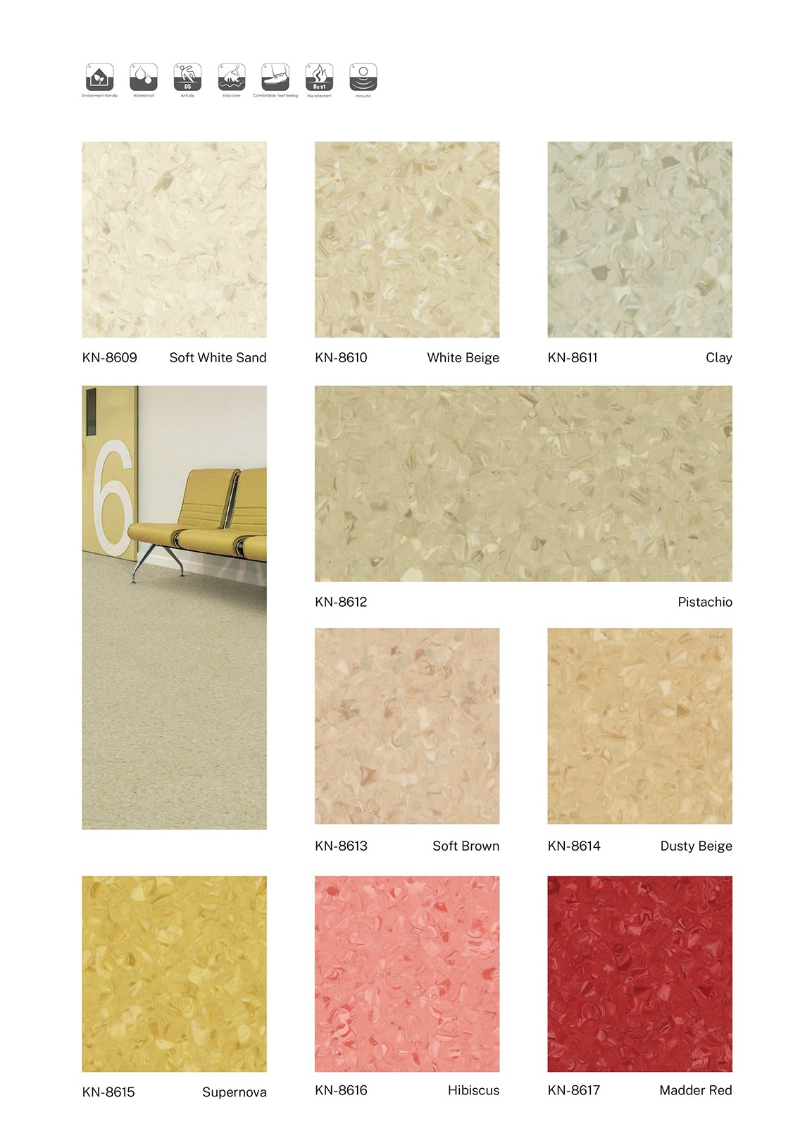 优势:通体结构 超强耐磨 耐压耐冲击 防滑防水 抗菌防霉 易清洁 绿色环保